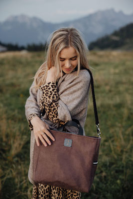 Das edle, samtig-weiche Obermaterial in warmem Braunton verleiht der Tasche eine elegante Note und macht
