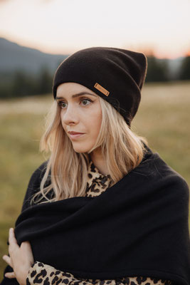 Unsere handgemachte Unisex-Beanie mit Umschlag wird aus hochwertigem, angenehm weichem Breit-Rib-Jersey gefertigt.