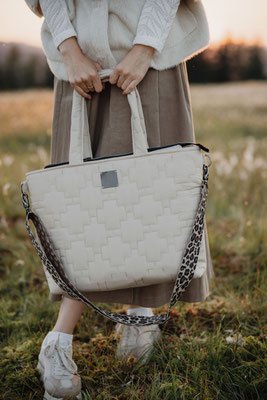 Das geometrische Steppmuster verleiht ihr eine moderne Struktur,